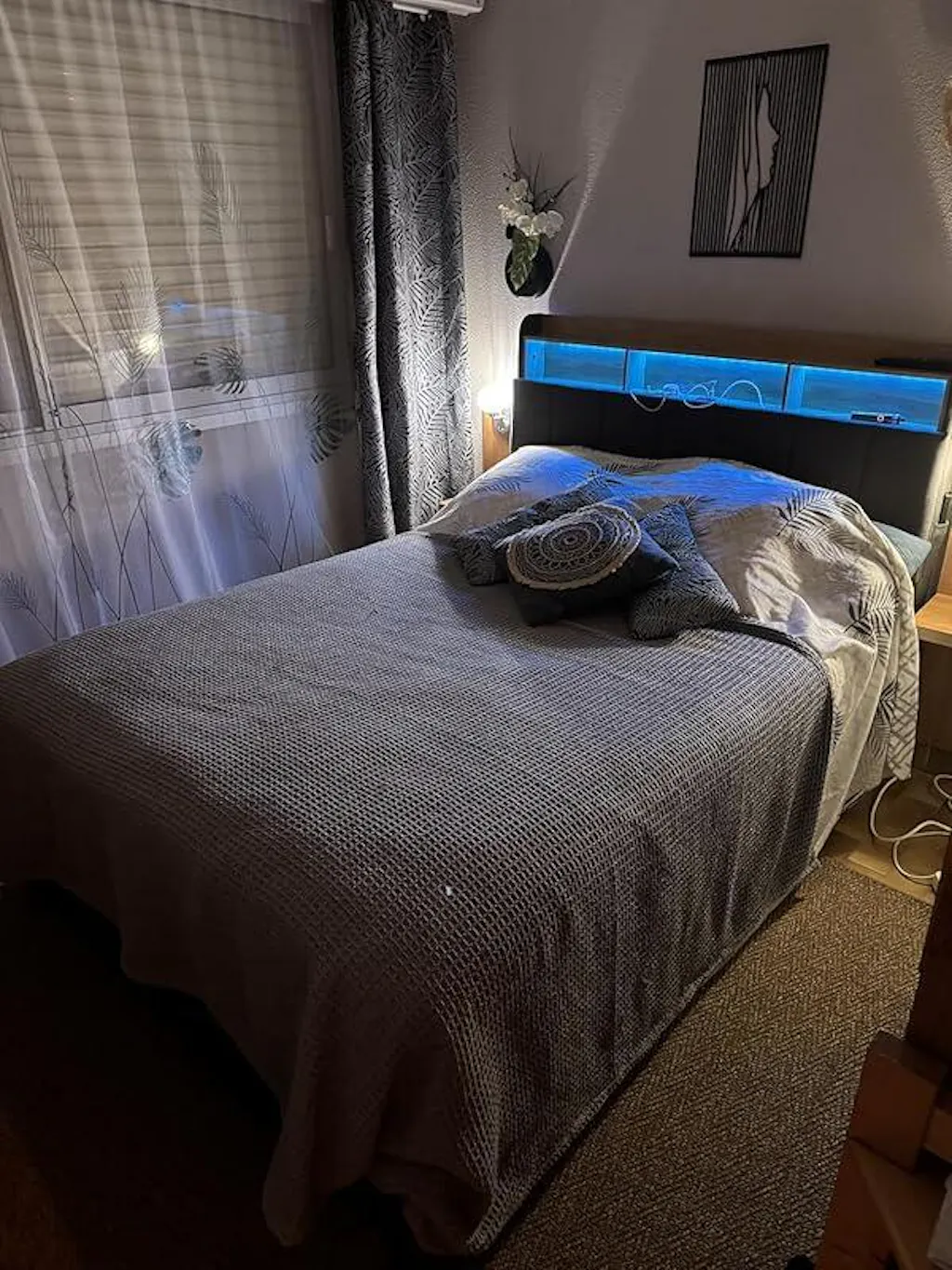 LED Lit 2 Personnes en PU avec Tête de Lit Capitonné Étagères Ouvertes et Rangement Caché Blanc