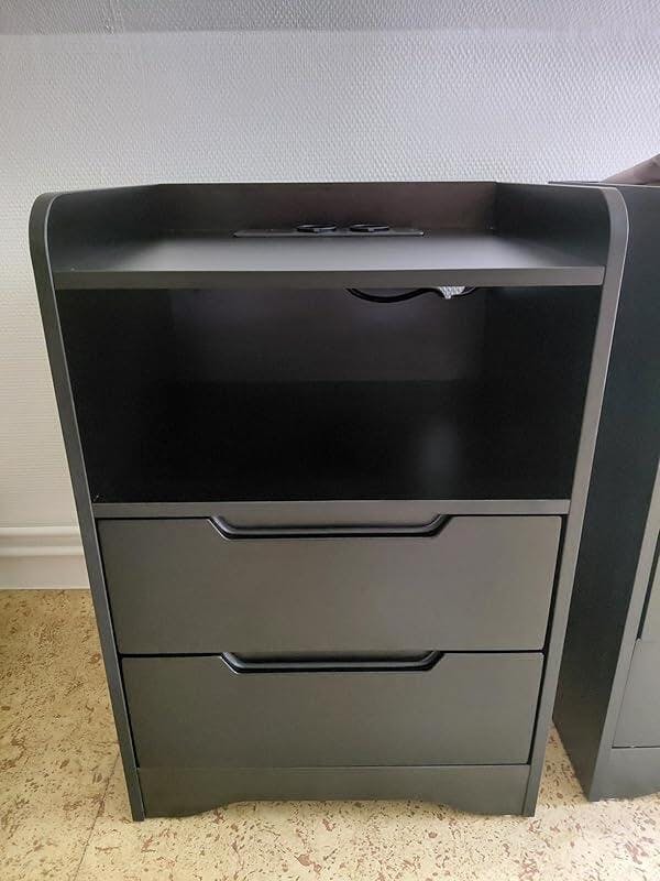 Table de Chevet Lot de 2 avec Bande LED Station de Charge 1 Compartiment Ouvert et 2 tiroirs Blanc